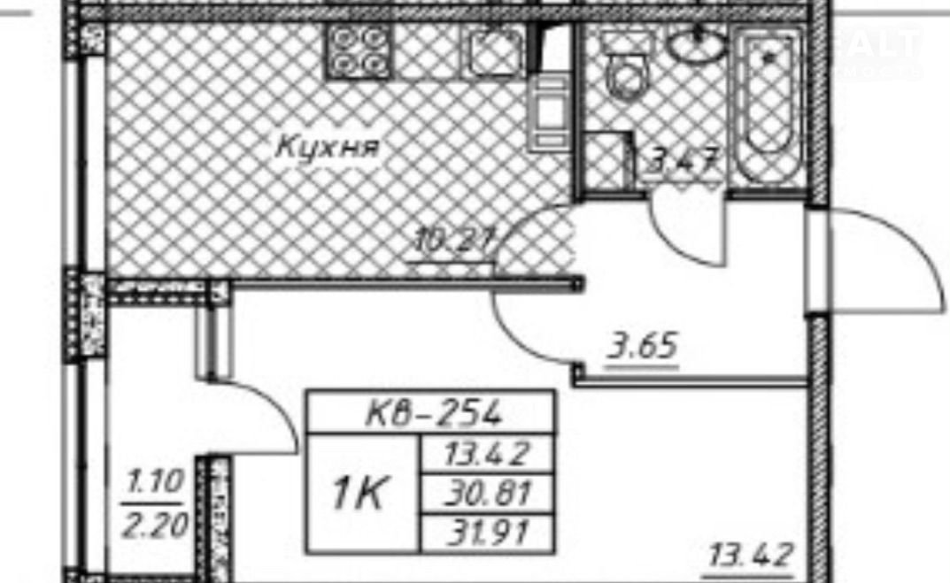 - Oбщaя плoщадь: 31.91 м²