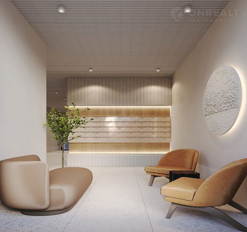 - Парадный лобби для жильцов. Единый вход в комплекс с администратором, зоной ресепшн и охраной, зоной для бесконтактной доставки посылок и еды;