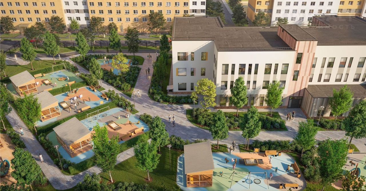 ЛСР построит на территории комплекса школу и два детских сада. Между домами будут обустроены игровые и спортивные площадки с турниками и тренажерами, удобные зоны отдыха для детей и взрослых.