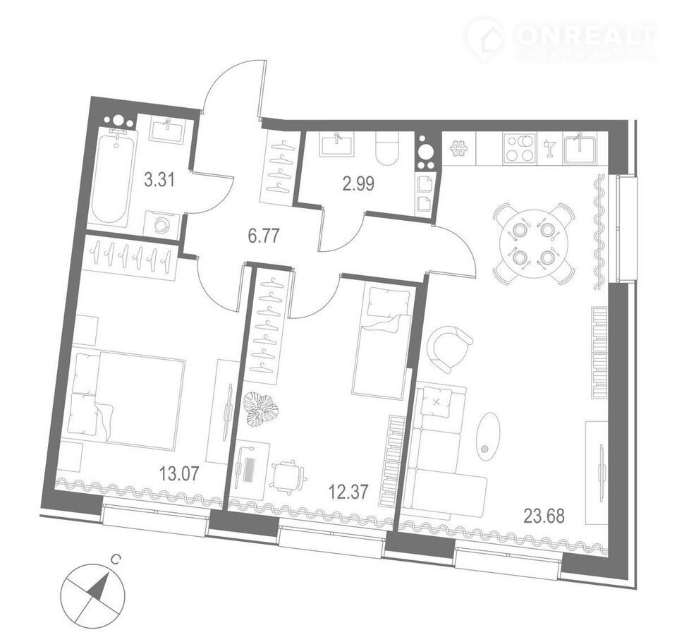2-комнатная квартира, 62.2 м2, этаж 9 / 11, на продажу в Санкт-Петербурге