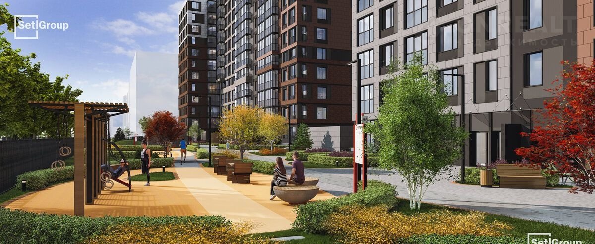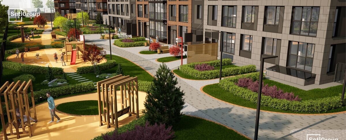 • Впечатляющий объем благоустройства: 30 000 кв. метров рекреационных зон с променадом и гейзерными фонтанами