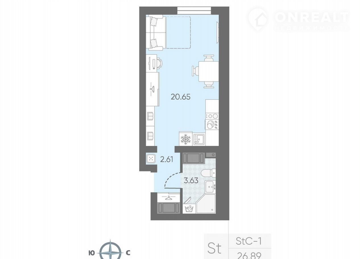 Квартира студия, 25.9 м2, этаж 7 / 23, на продажу в Санкт-Петербурге