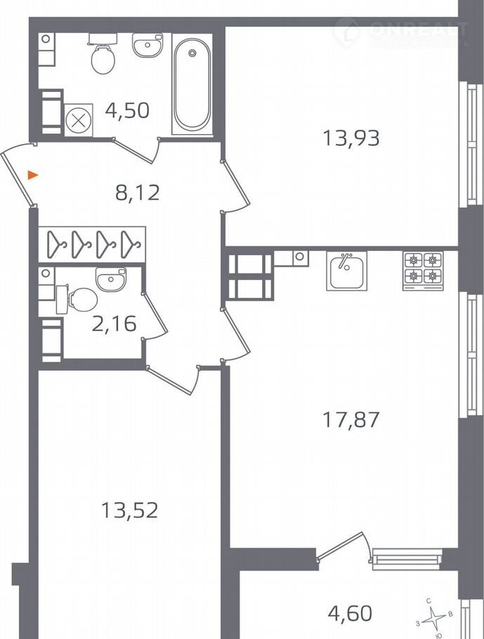 2-комнатная квартира, 62.4 м2, этаж 14 / 15, на продажу в Санкт-Петербурге