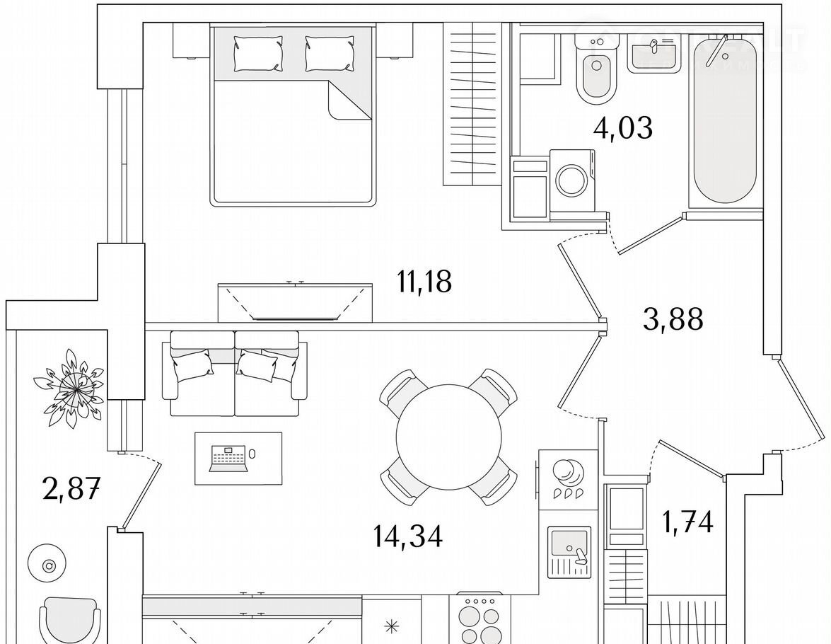 Общая площадь 36.6 м2