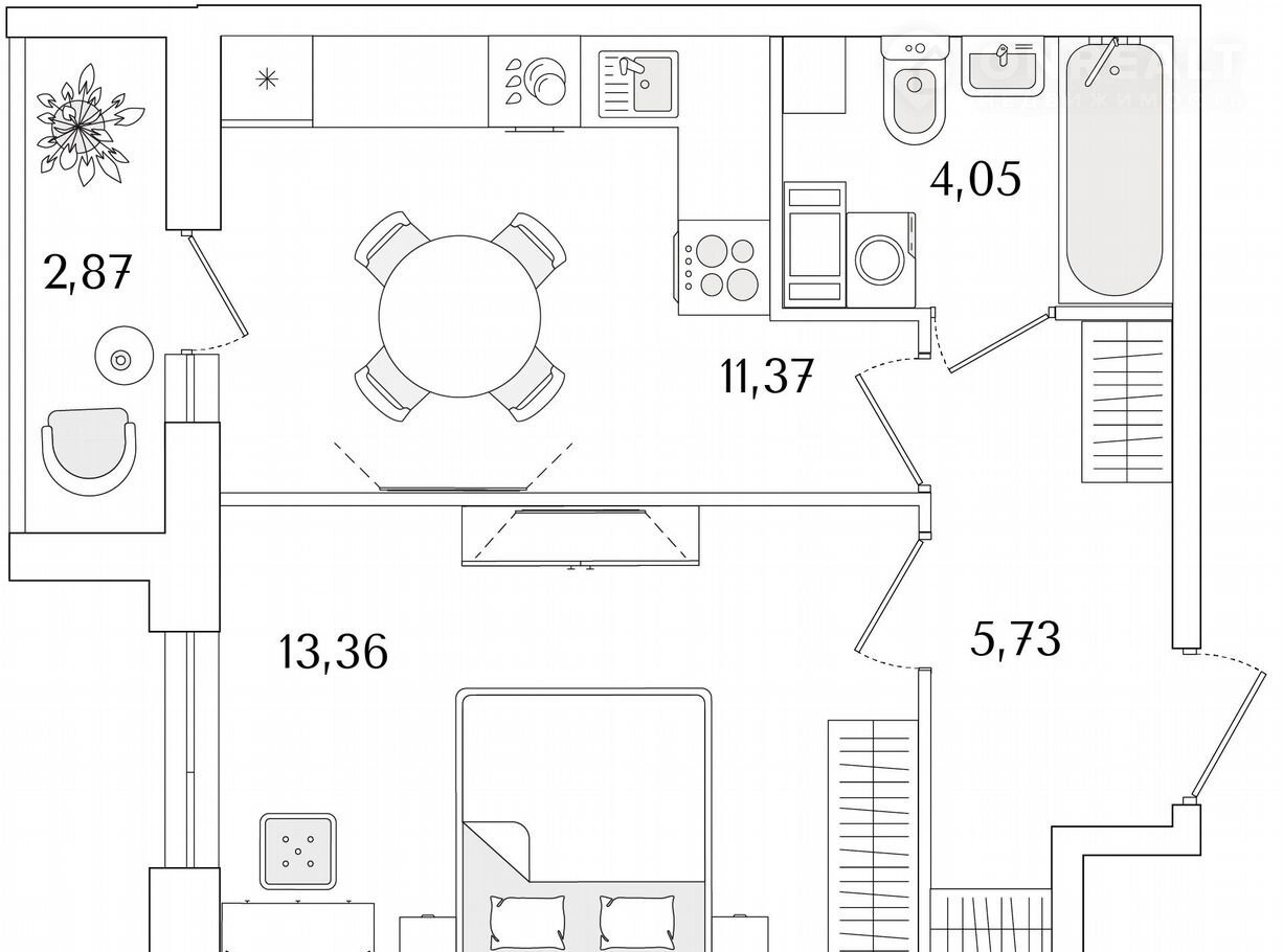 Общая площадь 36 м2