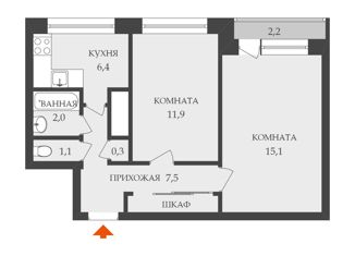 Продается 2-комнатная квартира, 44.2 м2, Лужская улица, 14к2