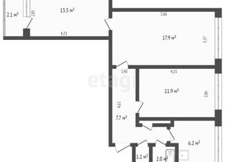 Общая площадь: 60.9 м2
