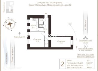 Продам 2-ком. квартиру, 64.3 м2, Поварской переулок, 12