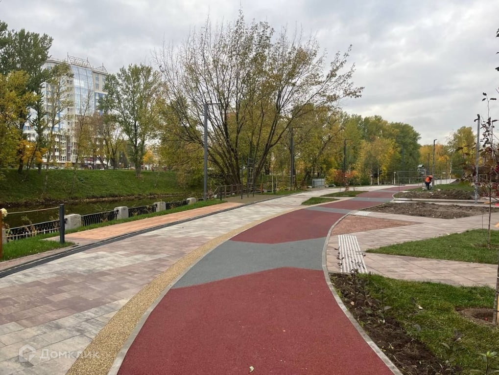 Рядом Малоохтинский парк и общественное пространство вдоль реки Охта.