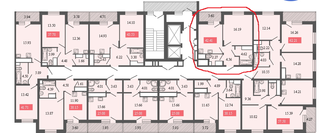 Общая площадь 43.08 м2