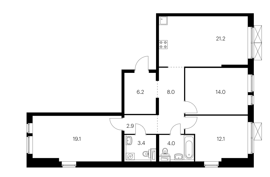 Общая площадь 90.9 м2