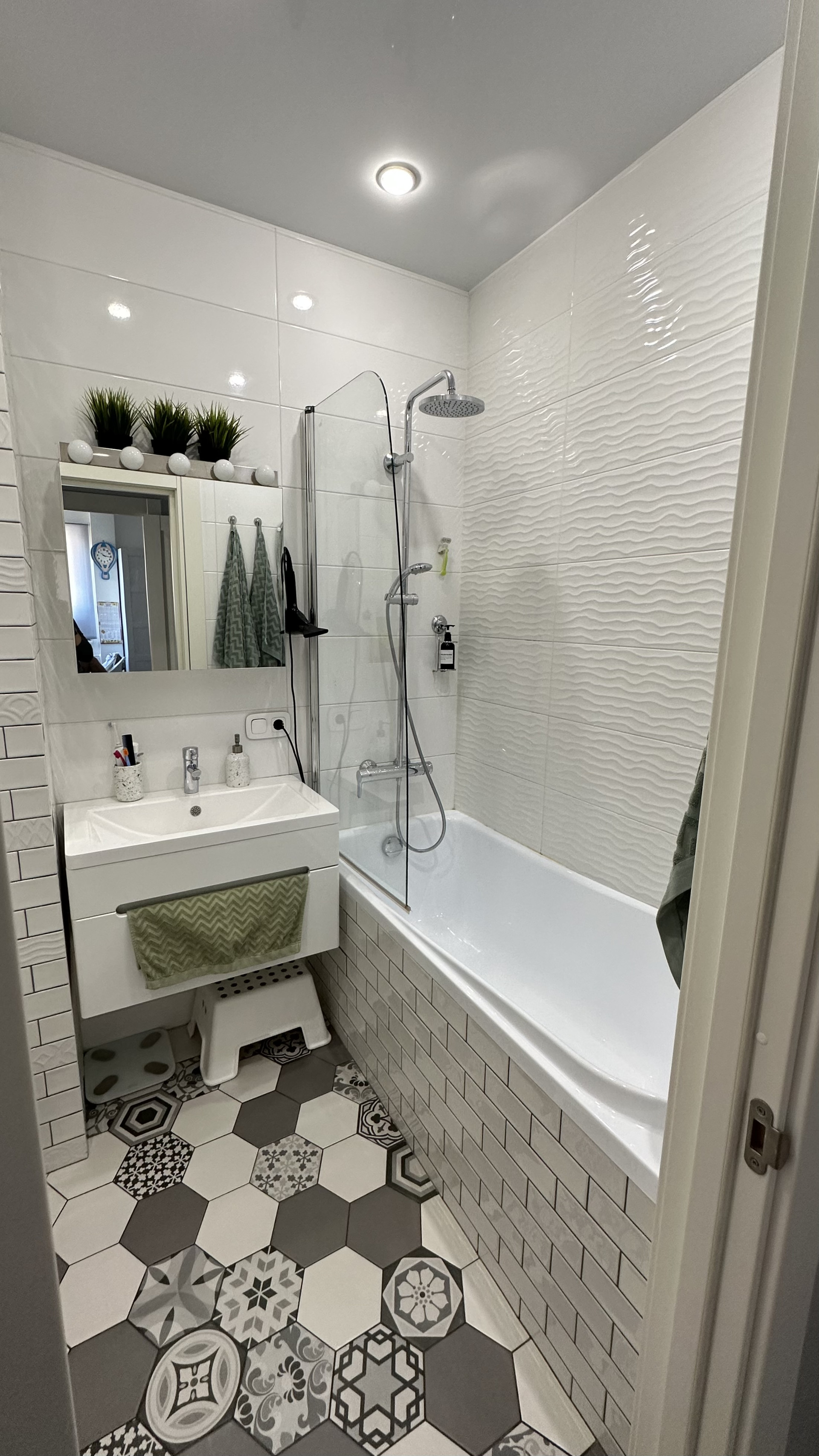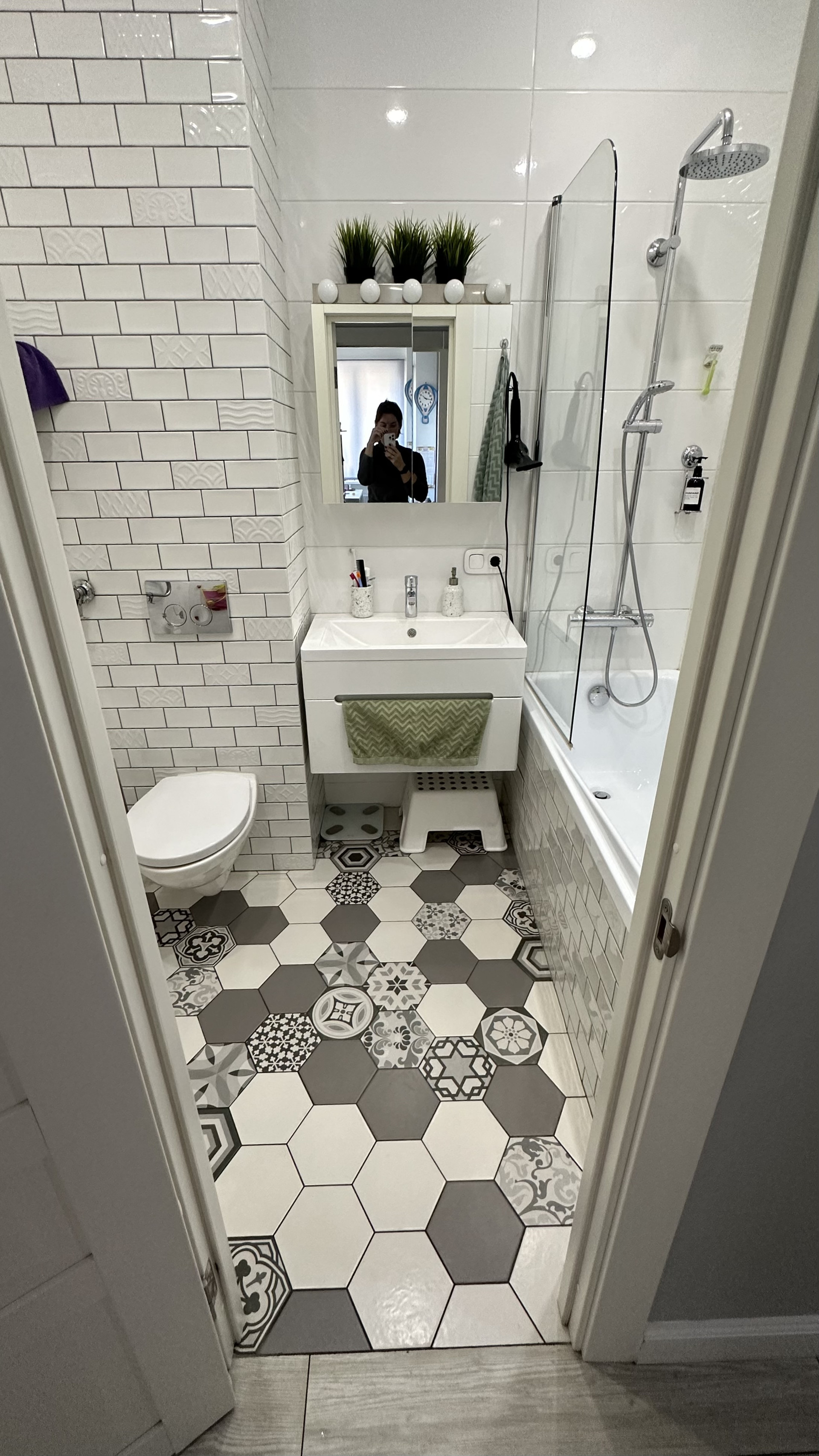 Санузел совмещенный. сантехника grohe, душевая система с тропическим душем ideal standart, подвесной унитаз jacob delafon, инсталляция geberit, акриловая ванна, итальянская плитка.