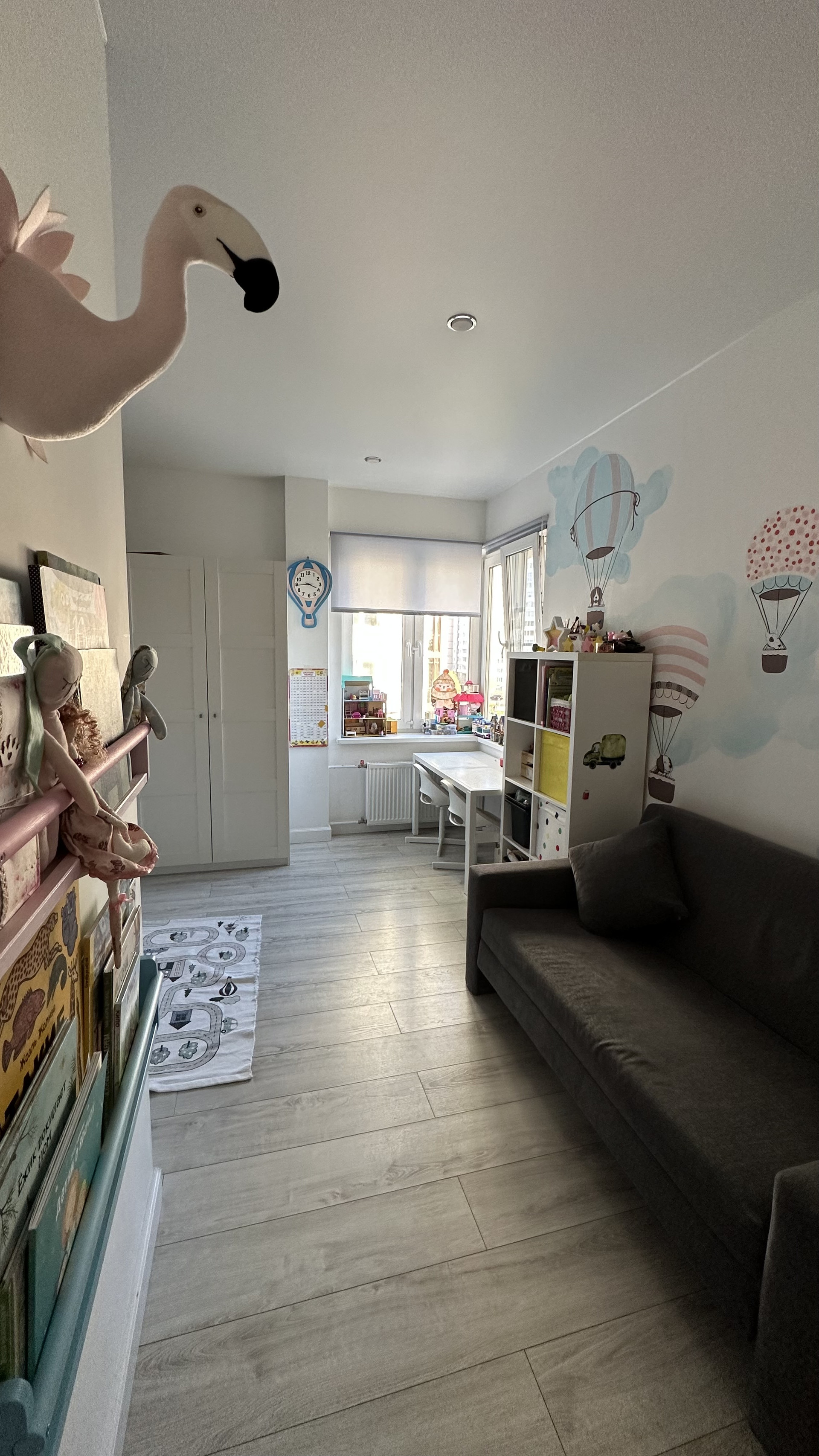 Детская: на одной из стен сделана роспись художником, двухъярусная кровать из массива. Окно, также в виде эркера, дает дополнительный свет и уют.