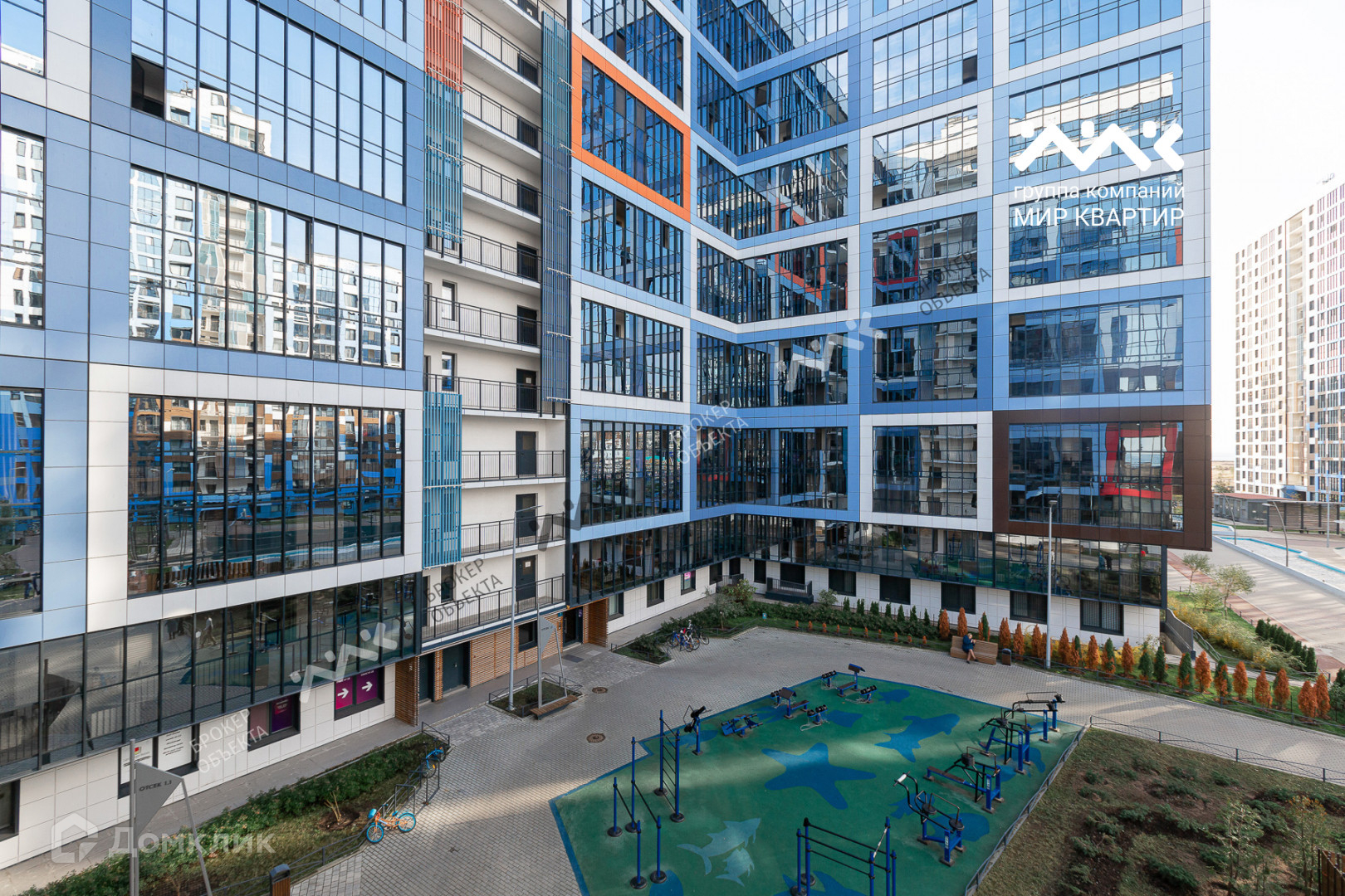 Территория жилого комплекса благоустроена и красива – застройщик предусмотрел спортплощадки с тренажерами, велодорожки, волейбольную и баскетбольную площадки, детские площадки, в планах постройка бассейна.