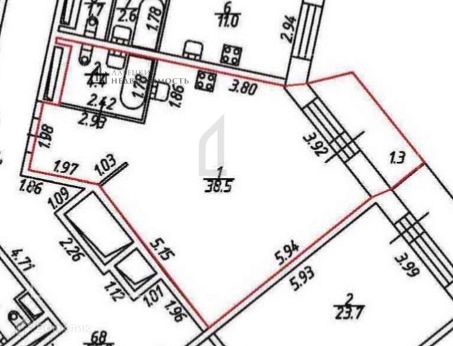 Общая площадь 42.9 м2