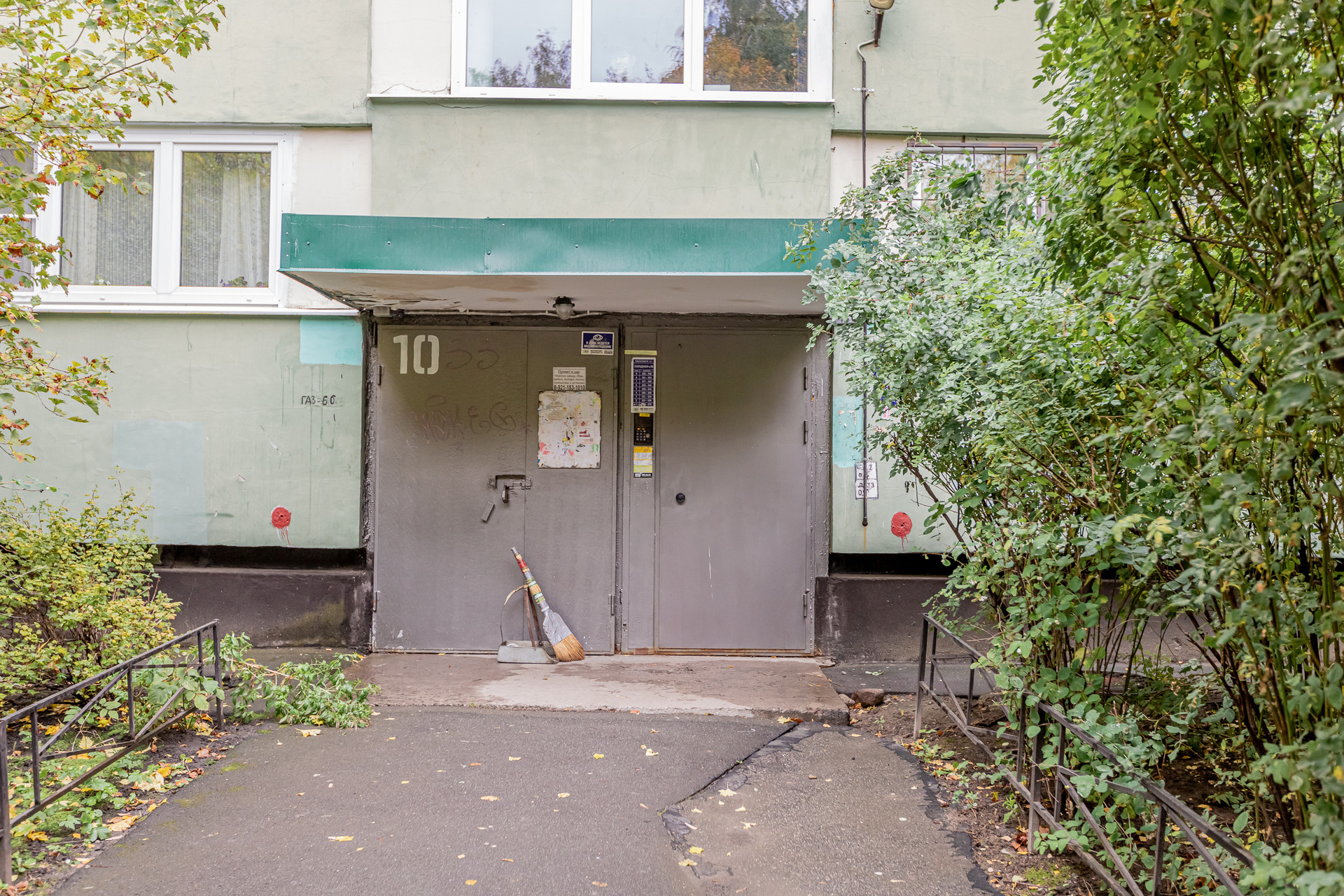 Во дворе открытая парковка. Ухоженная парадная, постоянные спокойные соседи.