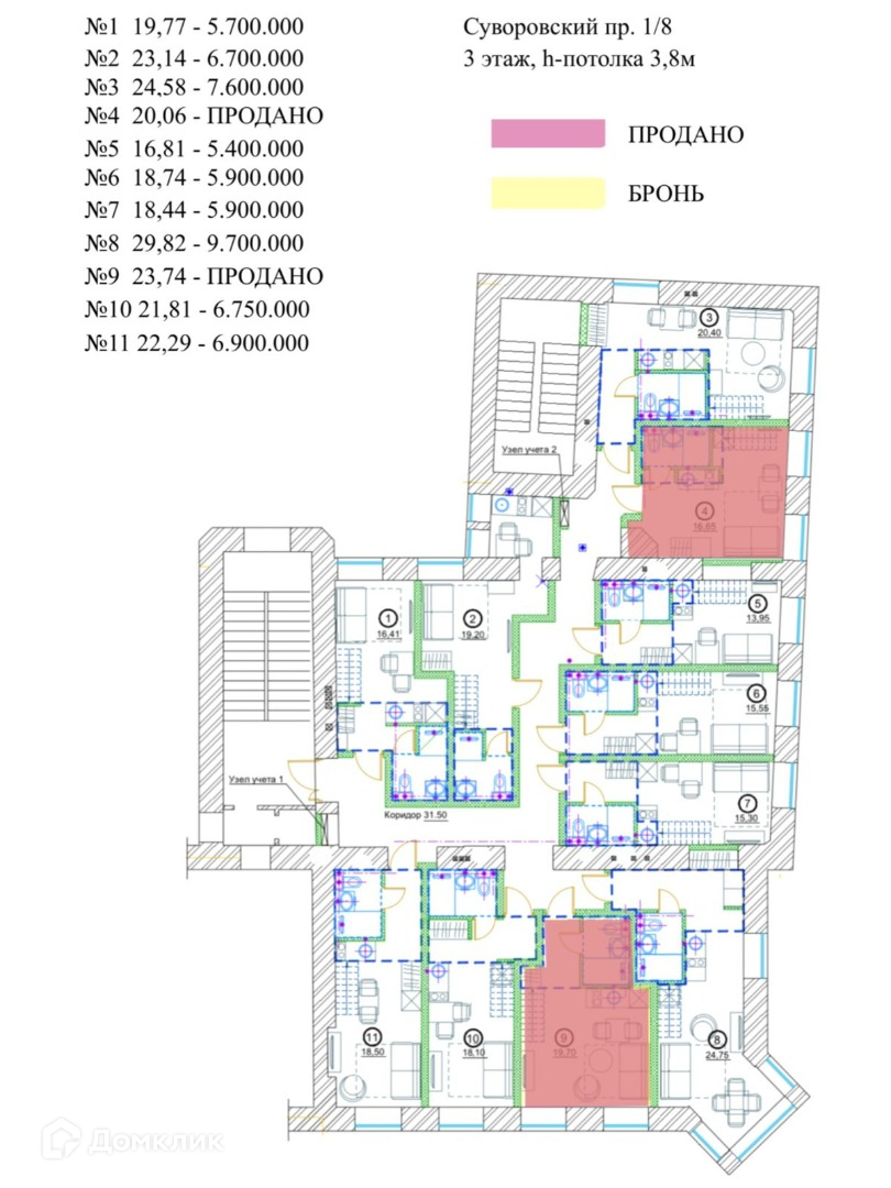 Квартира студия, 20 м2, этаж 3 / 3, на продажу в Санкт-Петербурге, Суворовский проспект, 1/8