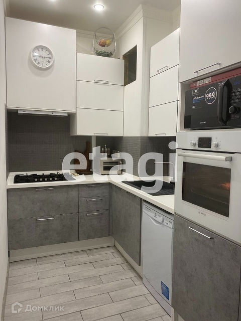 Есть действующий выход под камин, стена переложена огнеупорным кирпичом для установки камина. Покупателю остается кухонный гарнитур, барная стойка.