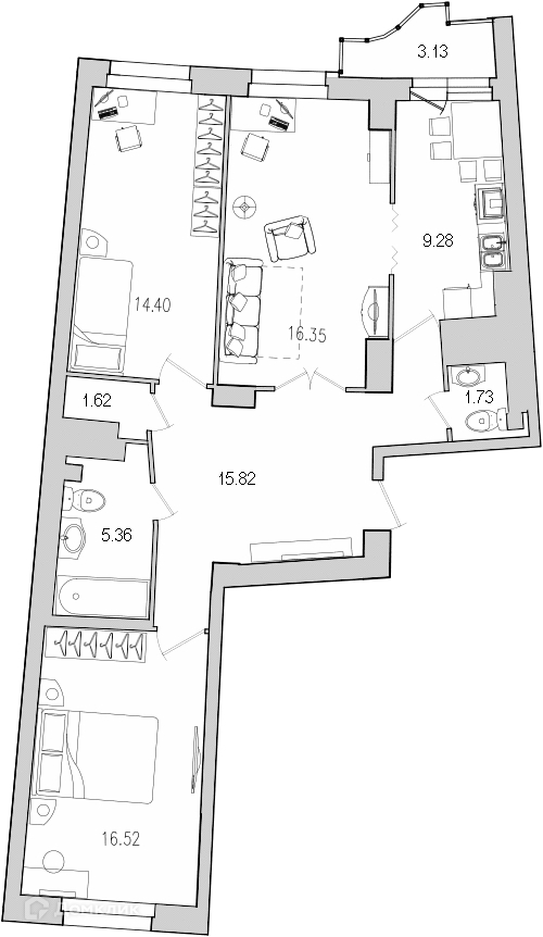 Количество комнат 3