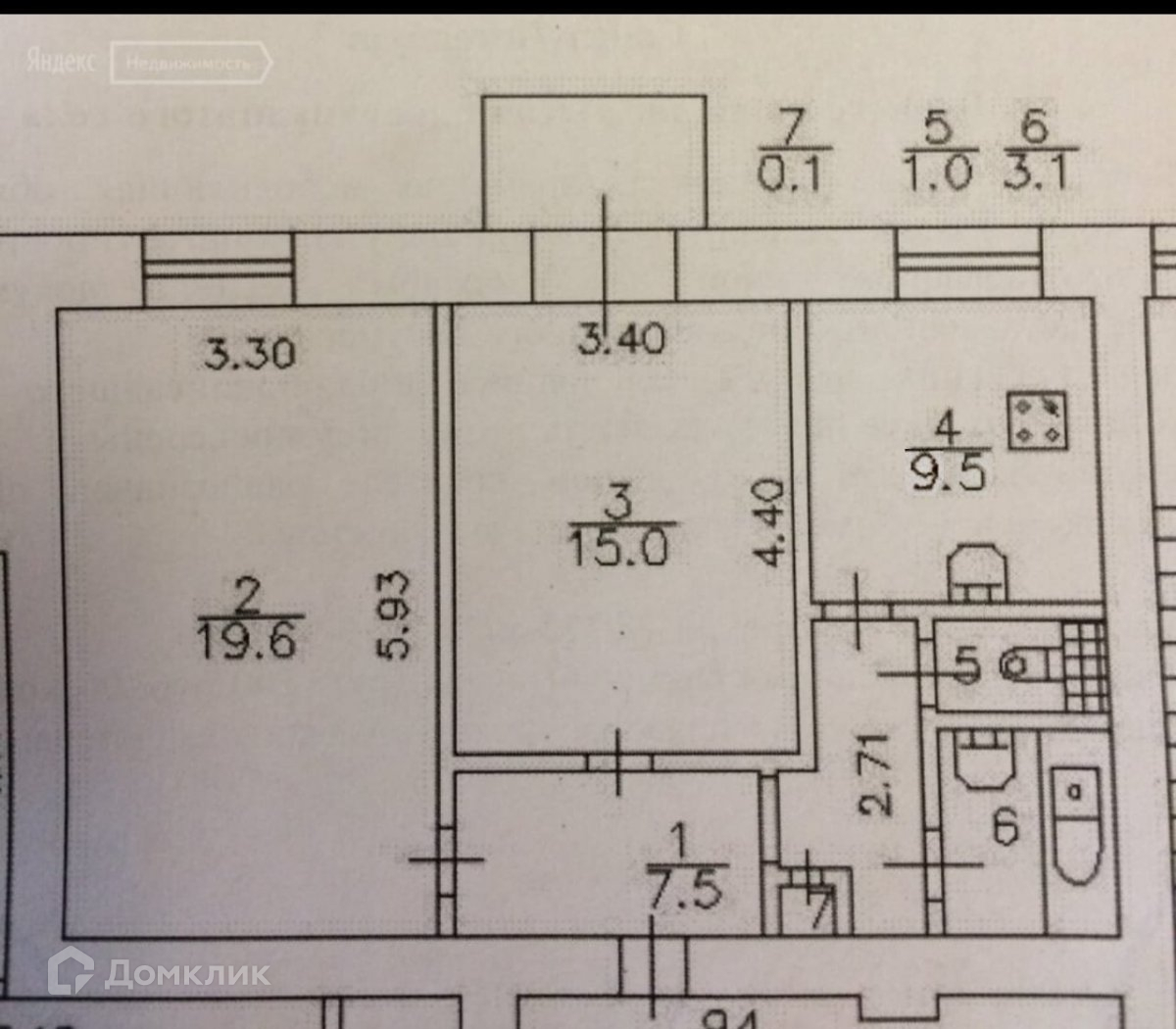 Жилая площадь 32.9 м2