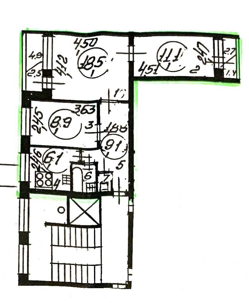 Санузел раздельный.Квартира двухсторонняя,окна выходят во двор,две застекленные лоджии.Помещение имеет жилое состояние ,требует косметических вложений .