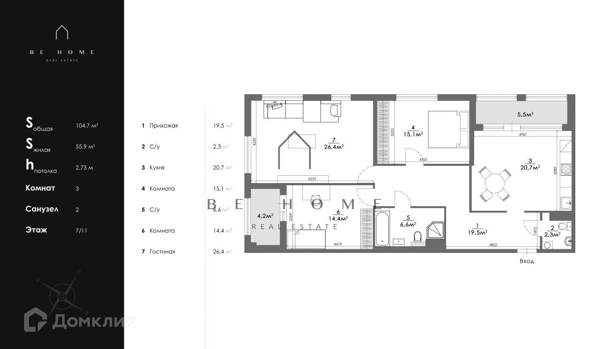 Общая площадь 104.7 м2