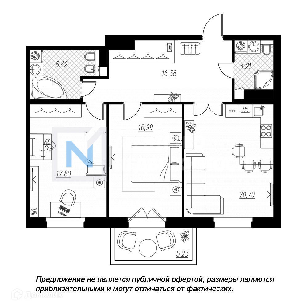 2-комнатная квартира, 85 м2, этаж 6 / 9, на продажу в Санкт-Петербурге, Петровская коса, 6к1