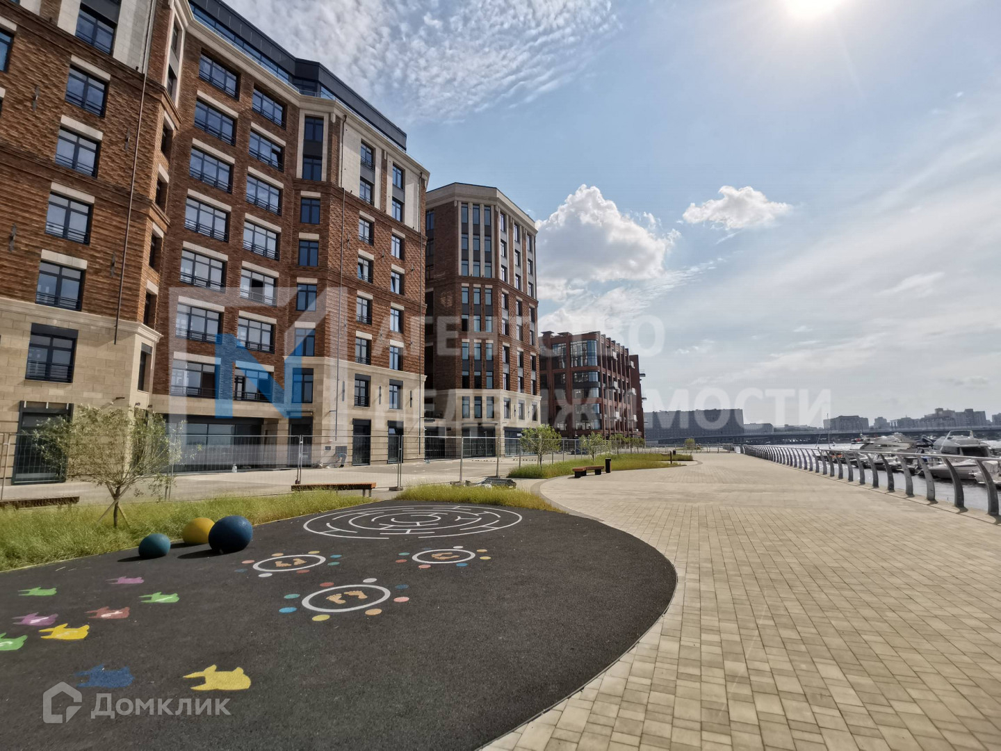 Закрытая внутренняя территория без машин, видеонаблюдение, прогулочная зона, детская площадка, своя набережная.