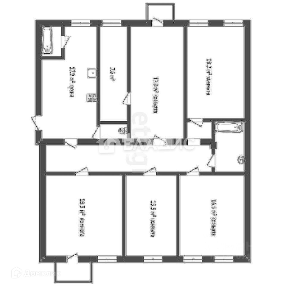 Комнаты: 17+7,6+18,2+18,3+13,5+16,5 м²