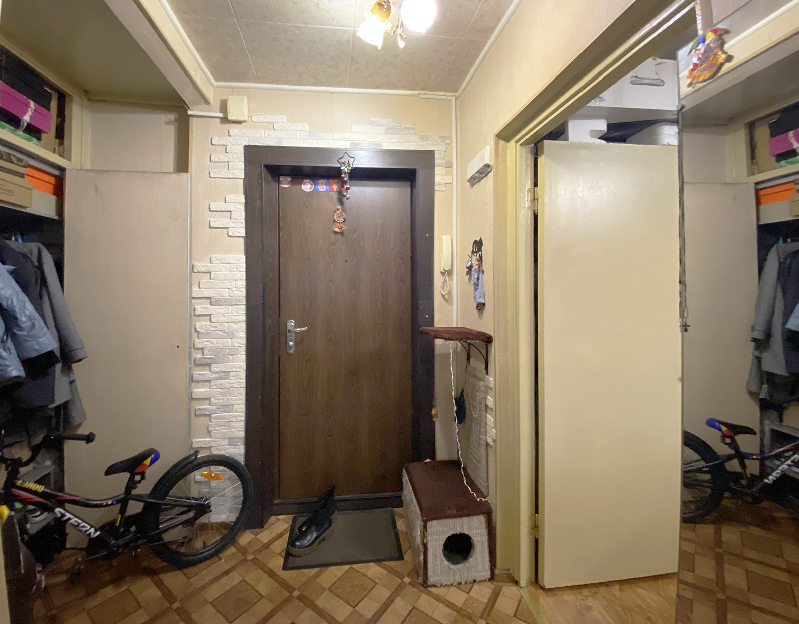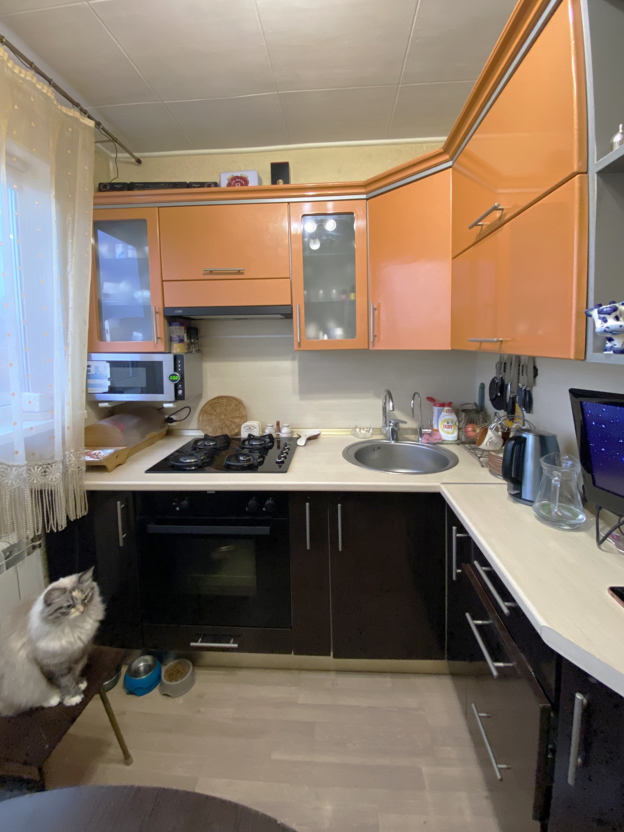 Встроенную кухонную мебель с бытовой техникой (вытяжка, варочная панель, духовой шкаф), шкаф в комнате готовы оставить в подарок покупателю.