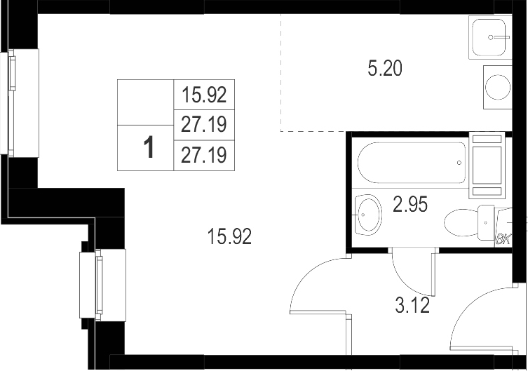Общая площадь 27.19 м2