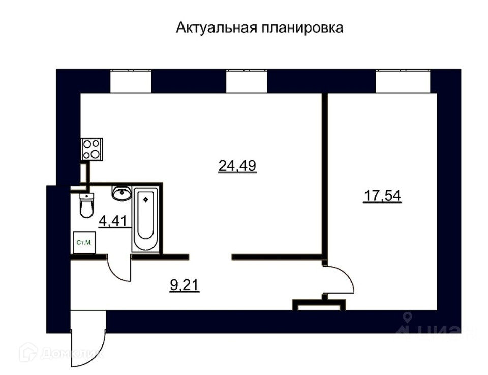 Общая площадь: 55,3 м