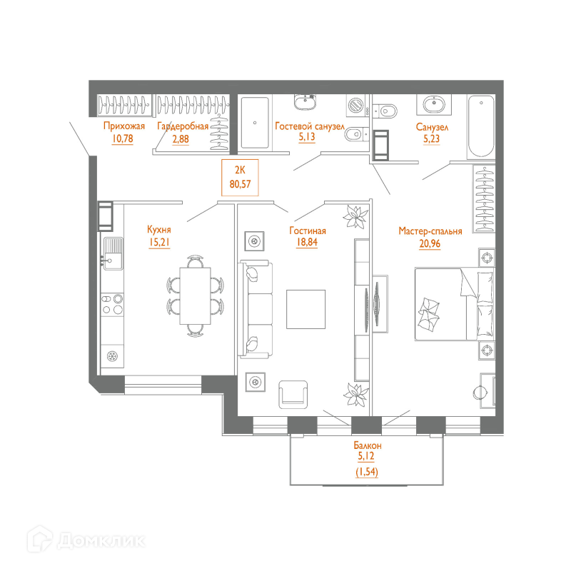 Общая площадь 80.57 м2