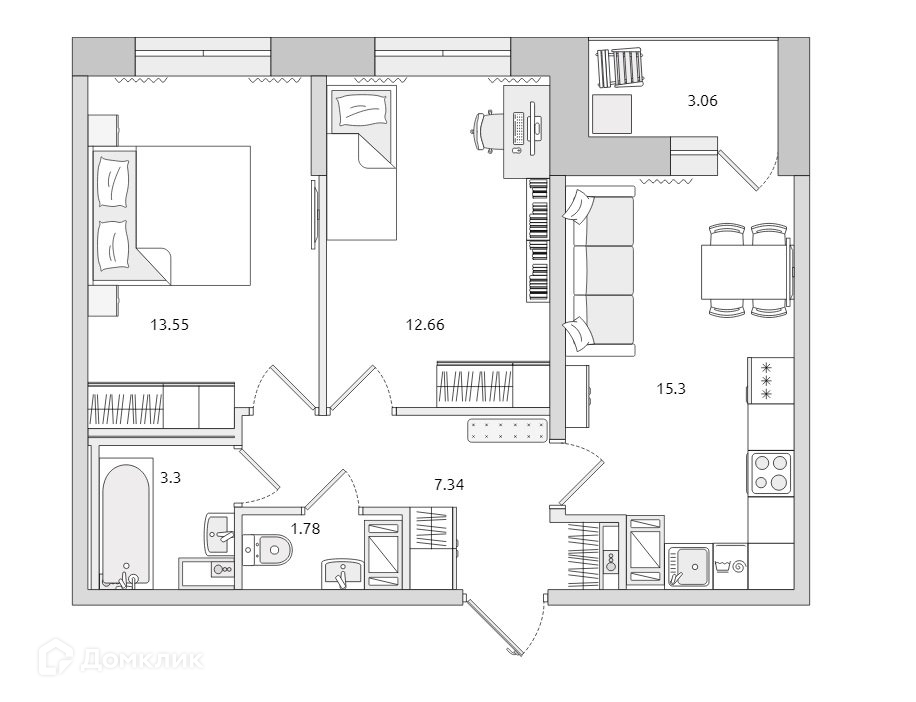 Общая площадь 57 м2