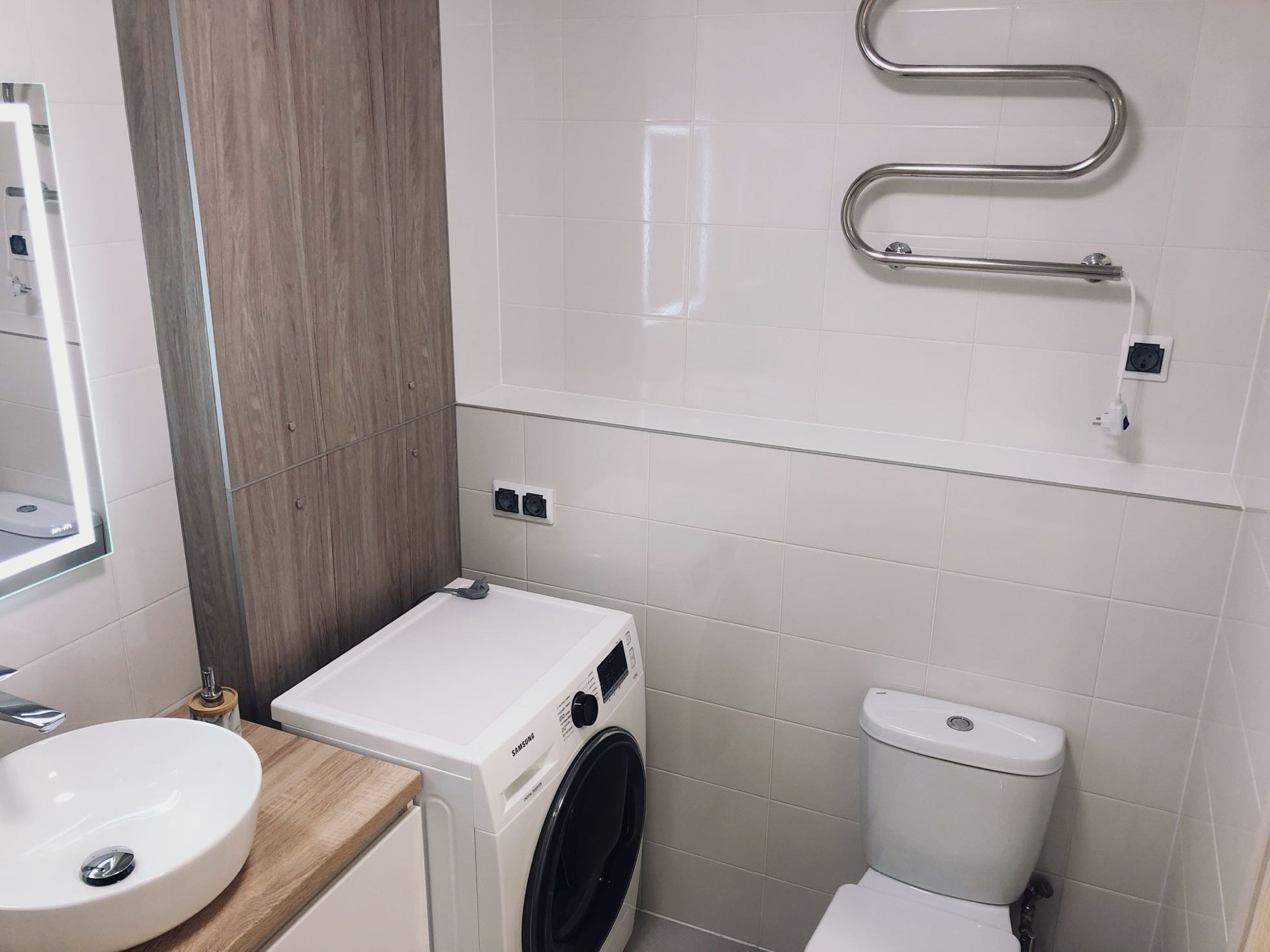 Два санузла, в которых был сделан небольшой ремонт. Новая стиральная машинка.