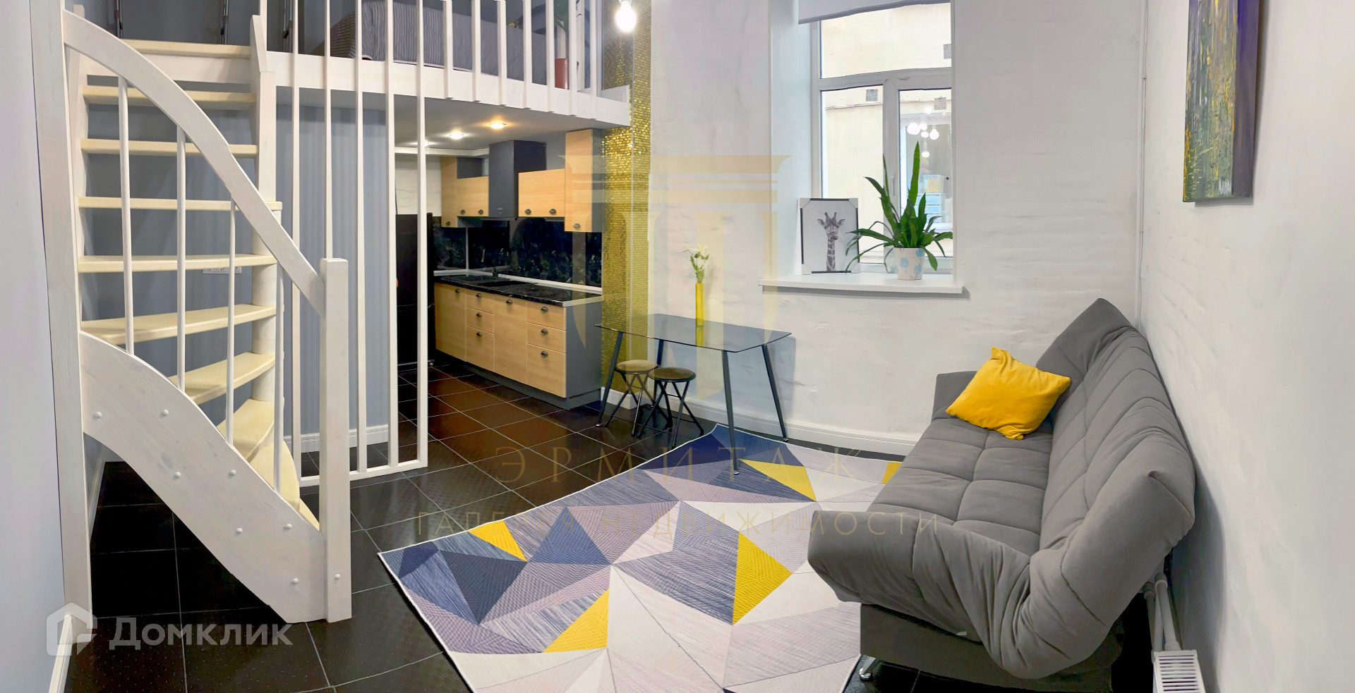 Площадь квартиры по полу - 21.7 м2. Высота потолков 4,2 м, что позволило выполнить удобное зонирование объекта. В квартире сделан дизайнерский ремонт, качественная отделка, теплые полы, оборудован второй этаж площадью 8,5 м2 со спальным местом, кухонная зона, просторный совмещенный санузел, гостиная и небольшая прихожая. Апартаменты имеют отдельный вход с улицы.