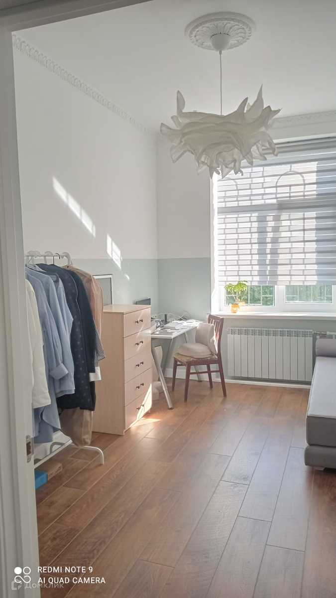 В Сталинском доме, на первом высоком этаже. Окна выходят в сквер.