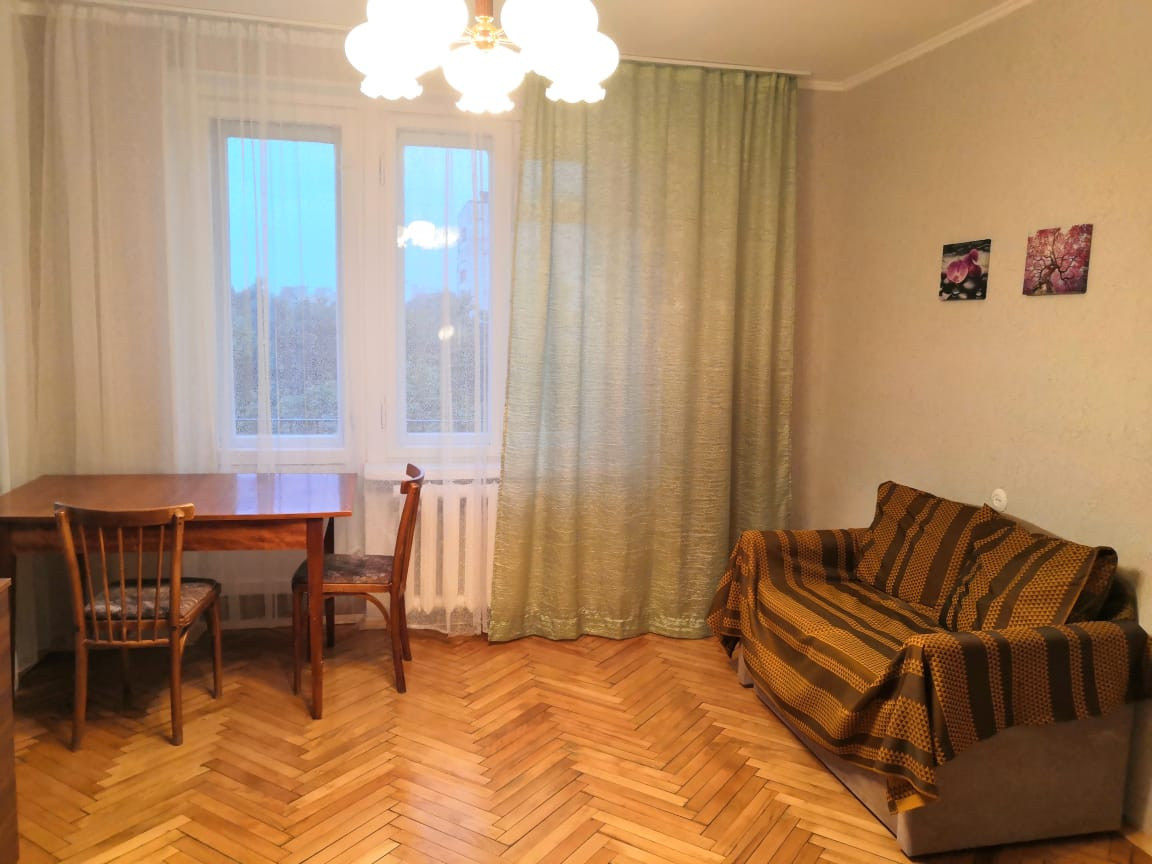 В квартире сделан косметический ремонт. Пол из чисто-экологического материала - паркет. Окна большие деревянные. Ванная совмещенная и в плитке. В прихожей встроенный шкаф. В квартире остается кухонный гарнитур. Две входные двери: железная и деревянная.