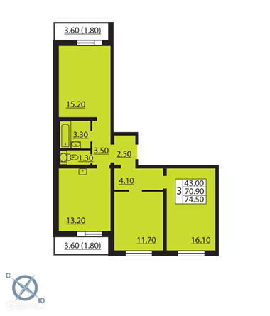 Общая площадь 77.9 м2