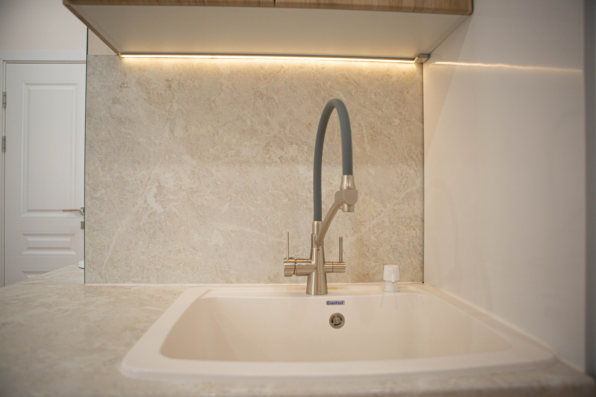 - В туалете предусмотрено место под раковину, столешницу (она уже в наличии), зеркало и подсветку.
