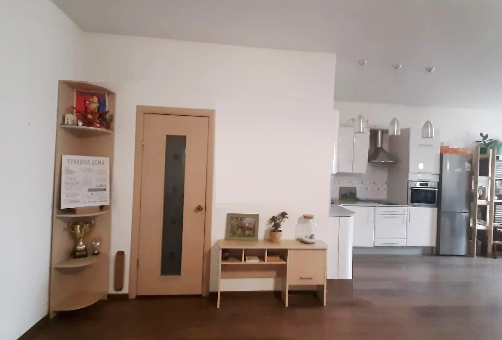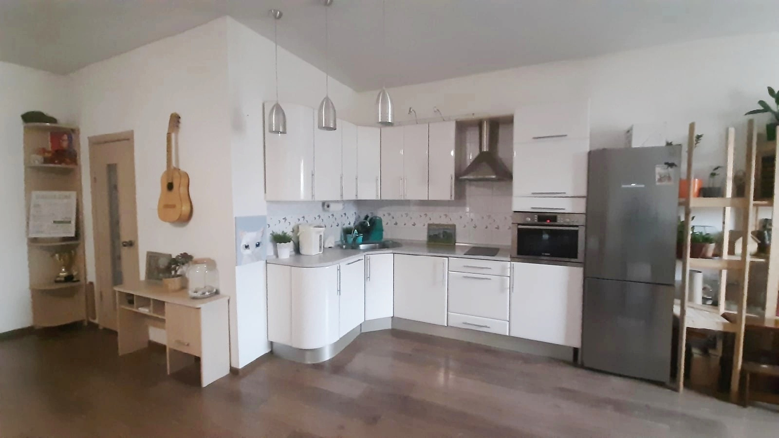 Кухня по индивидуальному проекту со всей необходимой техникой: холодильник, посудомоечная машина, сенсорная плита, встроенный духовой шкаф + стиральная машинка.