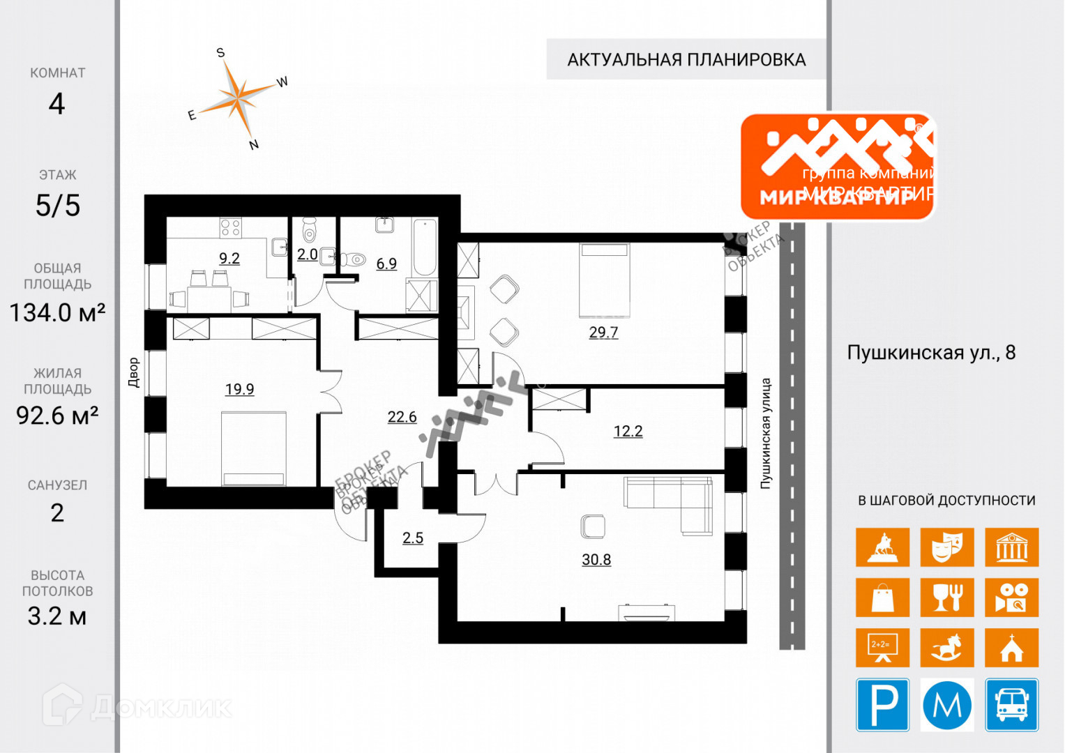 Общая площадь 134 м2