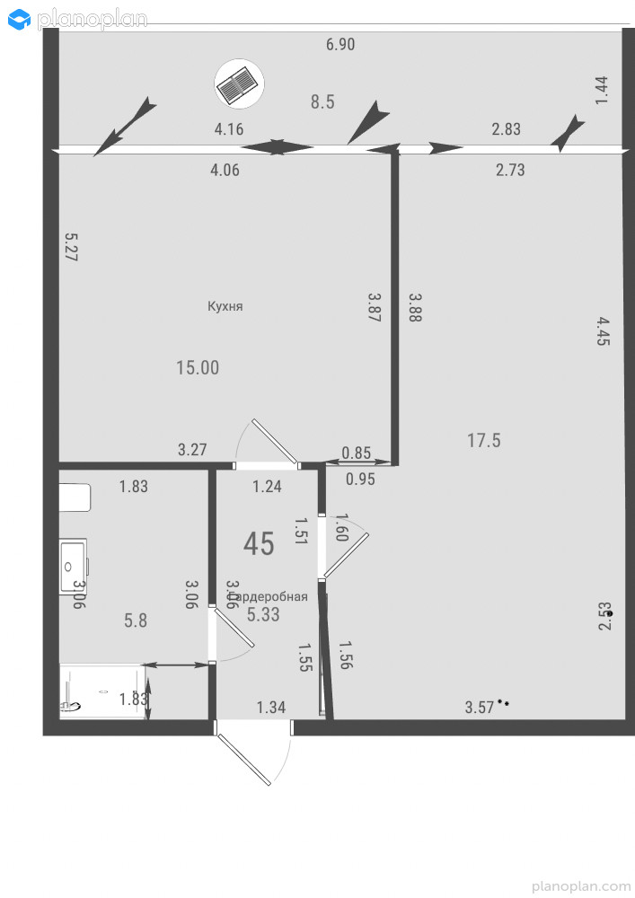 - большая кухня-гостиная 15кв.м.