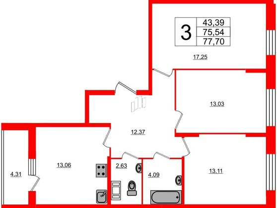 Общая площадь 77 м2