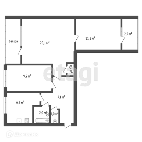 Общая площадь 57.5 м2