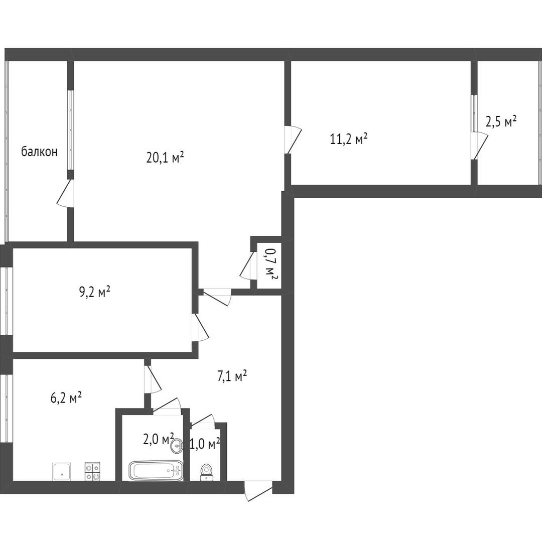 Уютная трёшка с двумя балконами и большой жилой площадью прекрасно подойдёт для семьи с детьми.