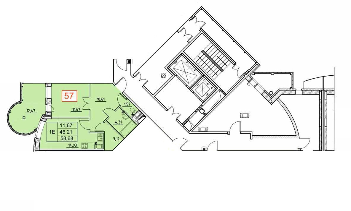 Общая площадь 58.68 м2