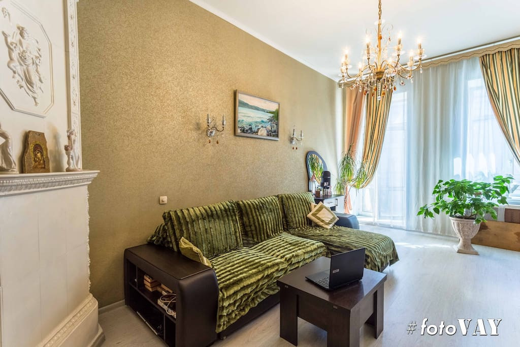 ●Гостиная - 23м. (с кондиционером, отреставрированным камином и выходом на балкон)