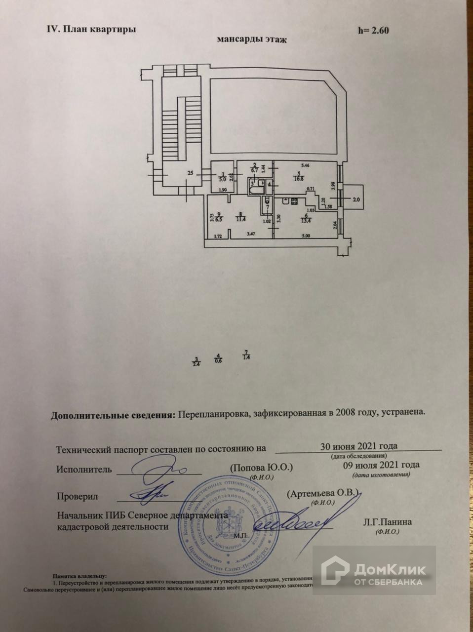Квартира располагается на 5 этаже 6-этажного дома 1899 года постройки, высота потолков 2.6 м, капитальный ремонт производился в 1981 году.