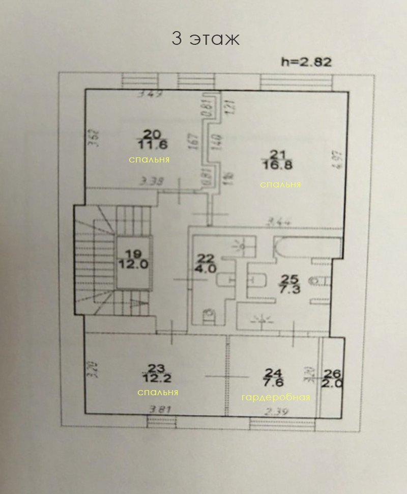3 этаж: три спальни, гардеробная, с/у
